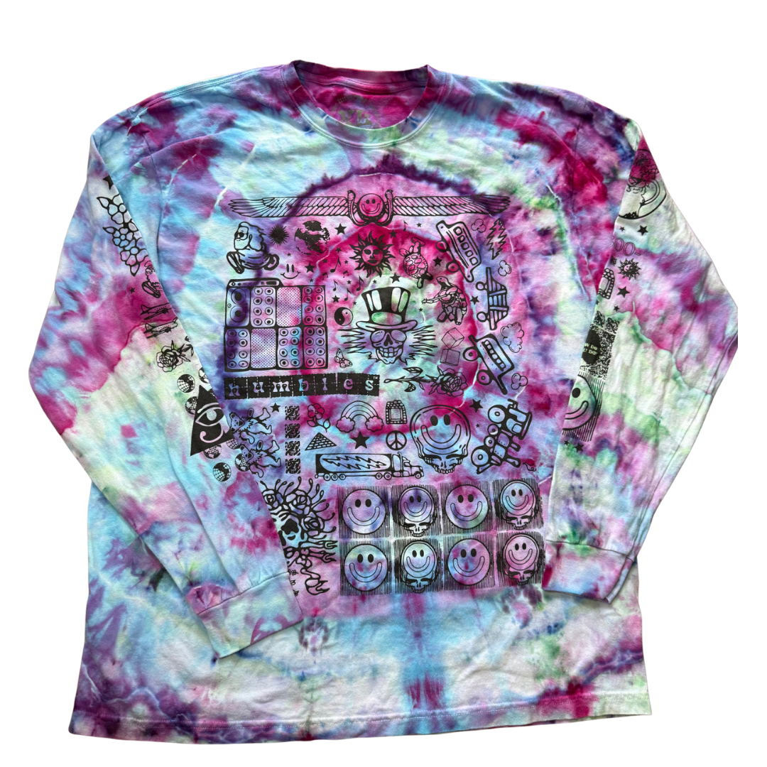 SYF60 design by Humbles brand. Screenprinted by hand in their studio, these shirts have been ice dyed by us!
